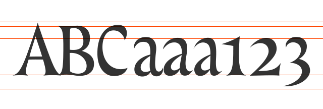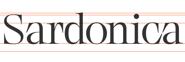 Visoko kontrastna expanzija crtana po Sardonica tipografskom pismu (Denis Sardoz). Visoki kurenti, a ima i nešto alternativnih znakova, a ima i malo lomardijske verzale kako bi ostao vjeran originalu.