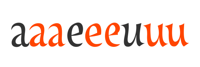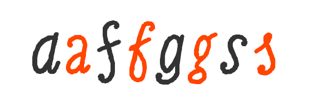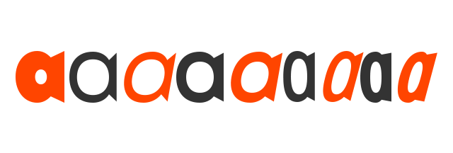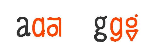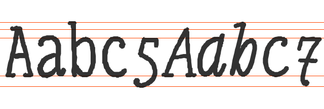 Italic font gdje se znakovi recikliraju. Debel, nizak, simpatičan (malo). Obli. Kotrlja se lijeno preko stranice. Slabo čitak.