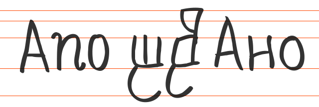 Rukopis, maaaasu znakova, latinica, glagoljica i ćirilica. Ima foru da se mjenjaju slova pa izgleda malo više kao ruokm pisano. Hrpa OpenType fičrsa. O.K. je u tekstu, O.K. je za neke naslove. Small caps čak i za brojke.